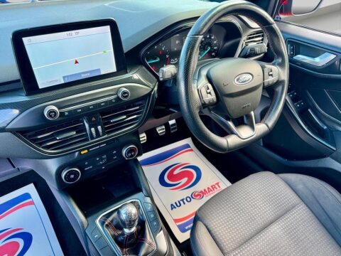 The Ford Focus ST Line stands out with its combination of practical features and a well maintained history. The inclusion of Android Auto and Apple CarPlay means you can seamlessly integrate your smartphone for navigation and entertainment, a significant advantage over many other vehicles. The automatic headlights add convenience and safety, while the full dealership service history, with the last service at 75,000 miles, indicates diligent care and maintenance, setting this Focus apart from others on the market.