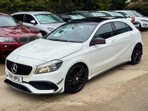 PANROOF AND BODYKIT! - SERVICE HISTORY / RECENT GEARBOX SERVICE / NEW 12M MOT INCLUDED - £20 ROAD TAX - AUTO - PANORAMIC SUNROOF, BODY KIT, EXECUTIVE PACKAGE, REVERSE CAMERA, HEATED SEATS, APPLE CARPLAY, ANDROID AUTO, CRUISE CONTROL, PADDLESHIFT, DRIVE MODES, FRONT AND REAR PARKING SENSORS, BLUETOOTH, USB PORT, AIR CON, CLIMATE CONTROL, AUTO LIGHTS/WIPERS, BLACK ALLOYS, SPOILER, BODYKIT AND MUCH MORE! - TWO FORMER KEEPERS - SERVICE HISTORY - RECENT GEARBOX SERVICE AT 91K MILES - FREE INTERIM SERVICE, NEW 12 MONTHS MOT, PRE DELIVERY INSPECTION AND 3 MONTHS NATIONWIDE PREMIUM WARRANTY COVER INCLUDED (Extended Warranty Available) - BOOK PACK/OWNERS MANUALS INCLUDED - HPI CHECKED AND CLEAR - This 2017 Mercedes Benz A Class A200d AMG Line (Executive) boasts a clear vehicle history check and comes with a 3 month warranty for your peace of mind. As a Euro 6 compliant model, it features a 2.1L diesel engine and the desirable AMG Line trim. The Executive Package enhances your driving experience with heated front seats, front and rear parking sensors, and a 180 degree reversing camera with parking guidelines. Enjoy the open air with the panoramic glass sunroof, which also includes a panoramic sliding sunroof for an opening feature. This A Class offers impressive performance with acceleration from 0-62mph in just 8.8 seconds, while also delivering an outstanding fuel economy of 71 mpg, indicating it is more economical than many similar vehicles. Its low CO2 emissions and low insurance group further highlight its cost effectiveness. You will also appreciate the generous boot space, making it a practical choice for everyday use and longer journeys. A 12 month MOT will be provided on purchase, ensuring its roadworthiness.- Dimensions